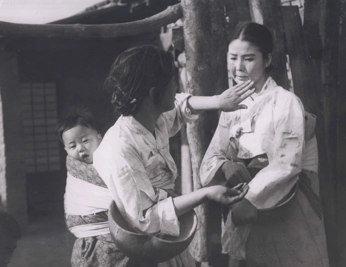 Initially, Bok-nyeon resorts to begging, a desperate act in the impoverished village they inhabit. However, the local women, recognizing her predicament and perhaps their shared struggle, eventually guide her toward more strenuous work. Her journey leads her to a forest where she finds employment picking caterpillars. This arduous task, undertaken out of sheer necessity, exposes her to a new layer of exploitation. The man overseeing the work is depicted as a predatory figure, a relentless womanizer who deliberately selected the women for their looks. He wields his authority to coerce several women into sexual encounters, a grim reality of the power dynamics prevalent during the era. Bok-nyeon’s turn inevitably arrives, marking a pivotal and devastating moment in her descent. The cumulative hardships she endures—the grueling labor, the poverty, and the sexual coercion—gradually erode her innocence and resilience, transforming her into a harsher, more hardened individual. Survival instincts begin to dictate her actions, leading her to use her own body as a commodity, a last resort in a world that offers her no other options. This stark reality creates friction and animosity among the women, their individual struggles for survival pitting them against one another, while her husband remains an utterly useless and demanding presence.